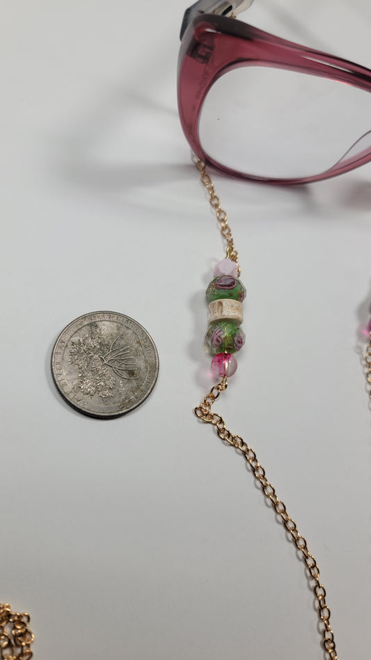 " Fish Bone and Green and Pink Flowers" Eye Glasses Chain