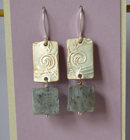 Shark Bone and Dark Gray Rectangle Earrings