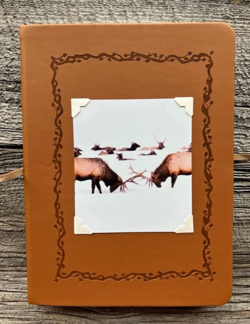 Brown Leather Sketchbook with Fighting Bull Elk Photograph