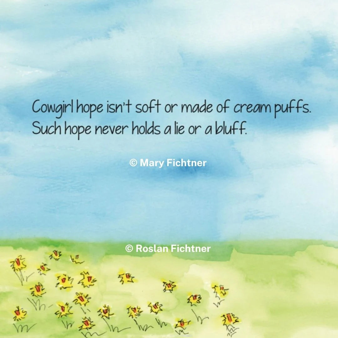 The Hope of a Cowgirl sounds light and beautiful, but in reality, it has a tear-stained, dirty face, bruises, scars, disappointments, and regrets. Dirt gets brushed off, bruises heal, scars define, disappointments teach, and regrets guide. That is what the Hope of a Cowgirl looks like.