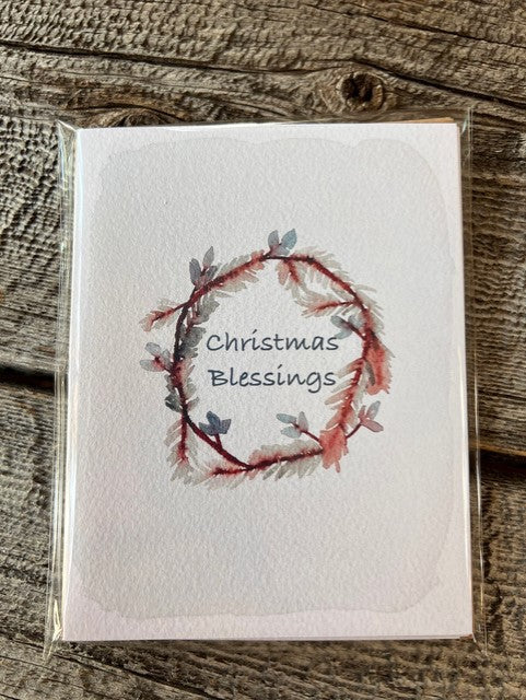 Christmas Blessings Watercolor greeting cards with pine wreath