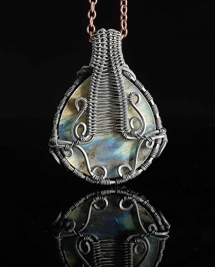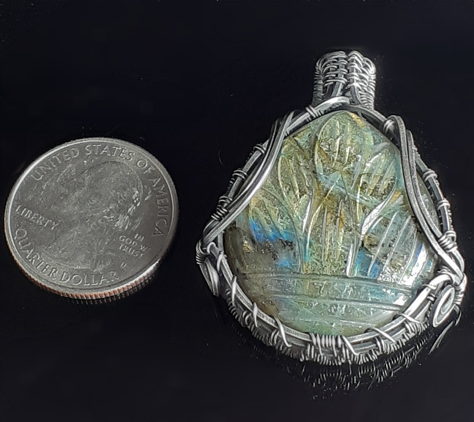Carved Labradorite in antiqued polished sterling silver