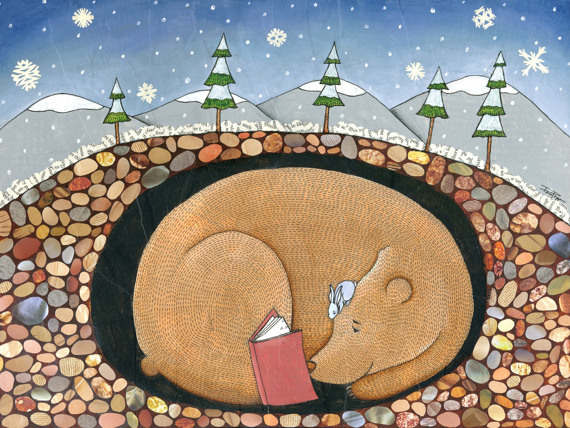 Bear and Rabbit are curled up hibernating from the cold winter.