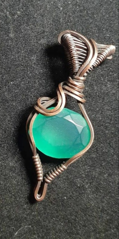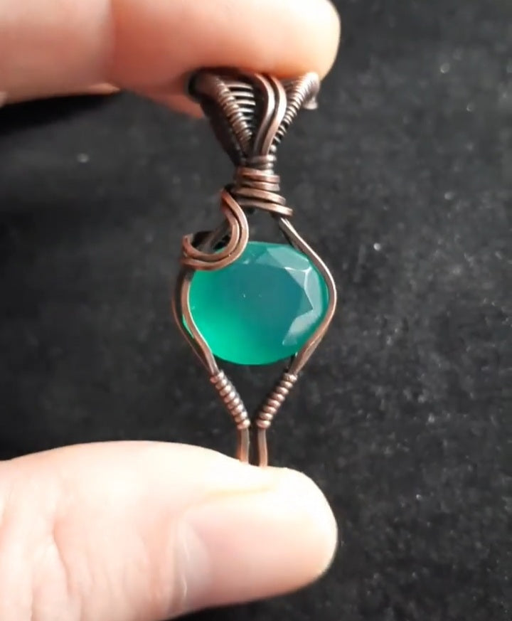 Faceted green onyx in oxidized copper