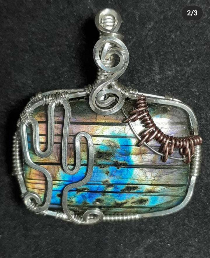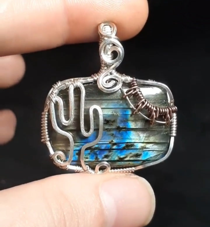 Rectangle Labradorite stone wrapped in a Desert Scape design