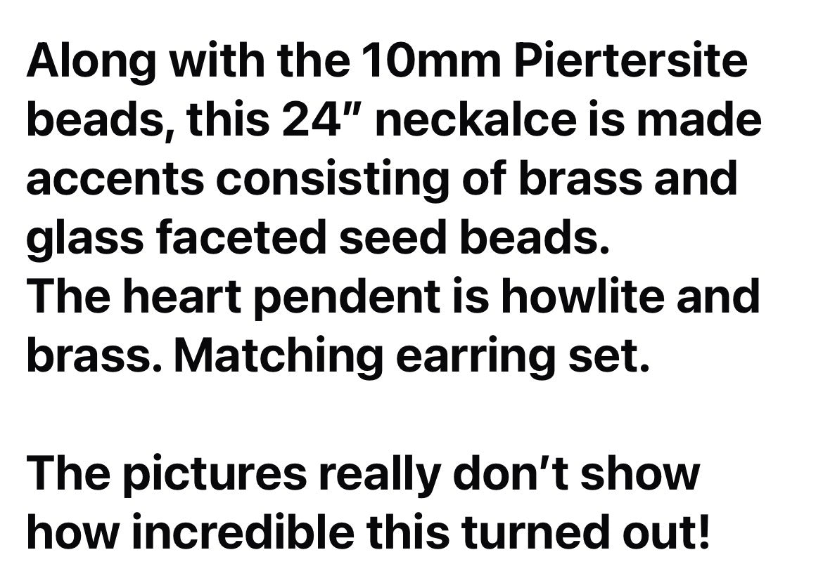 Earring and Necklace Set - Howlite Heart, Pietersite Beads and Brass