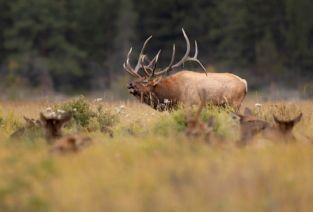 " Fall Elk Rut Bugling with Grass" Elk Print
