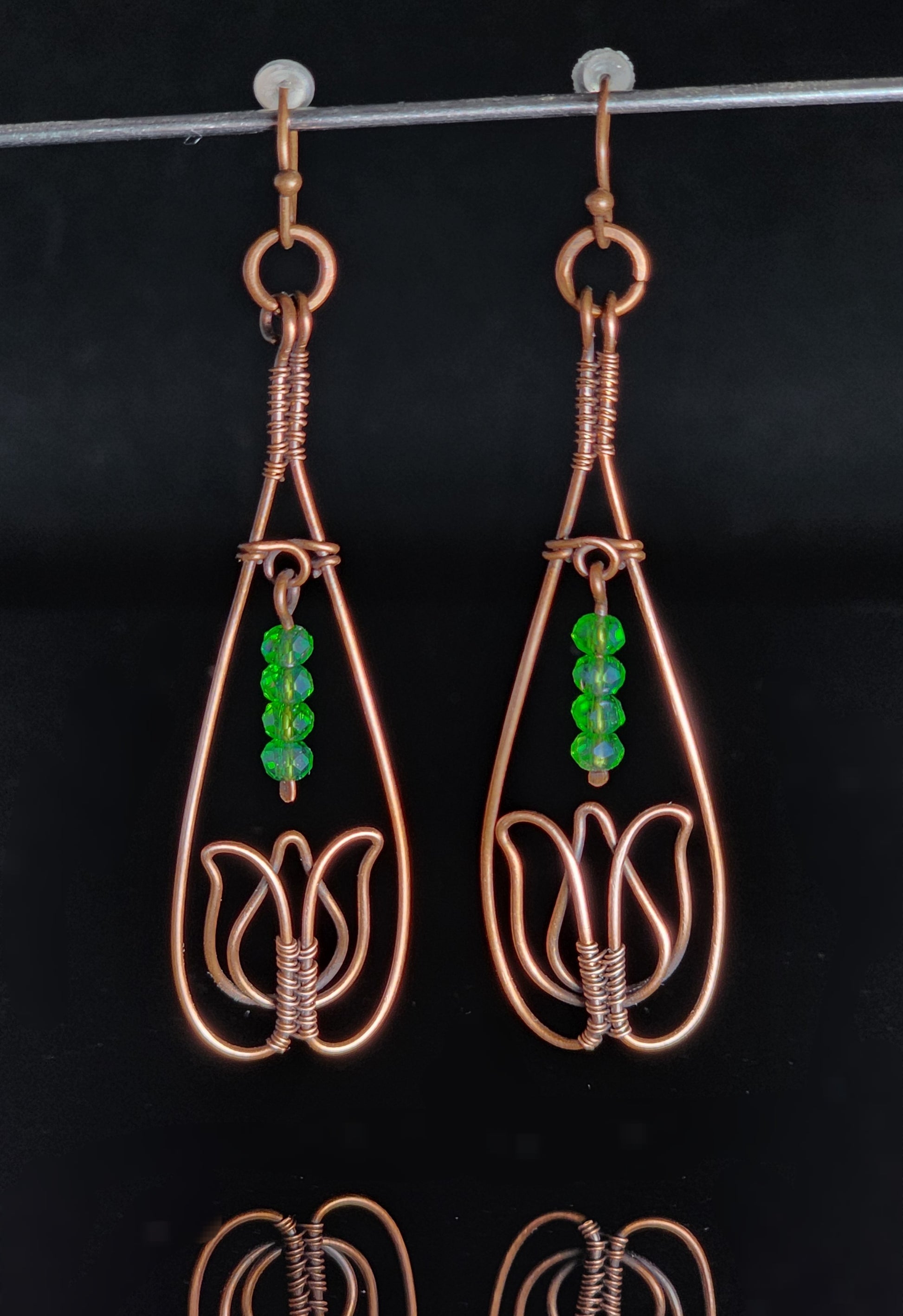 Green Bead Copper Tulip Earrings