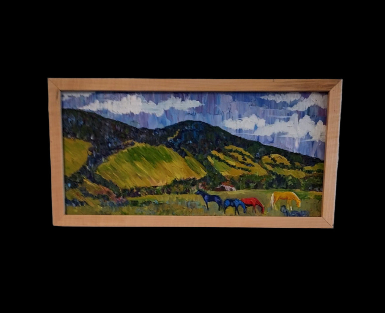 " Horses Below Sheep Mountain Scar " Framed Original Oil Painting