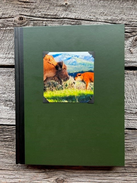 Large Forest Green Hardcover Sketchbook with Bison Cow and Calf Photograph