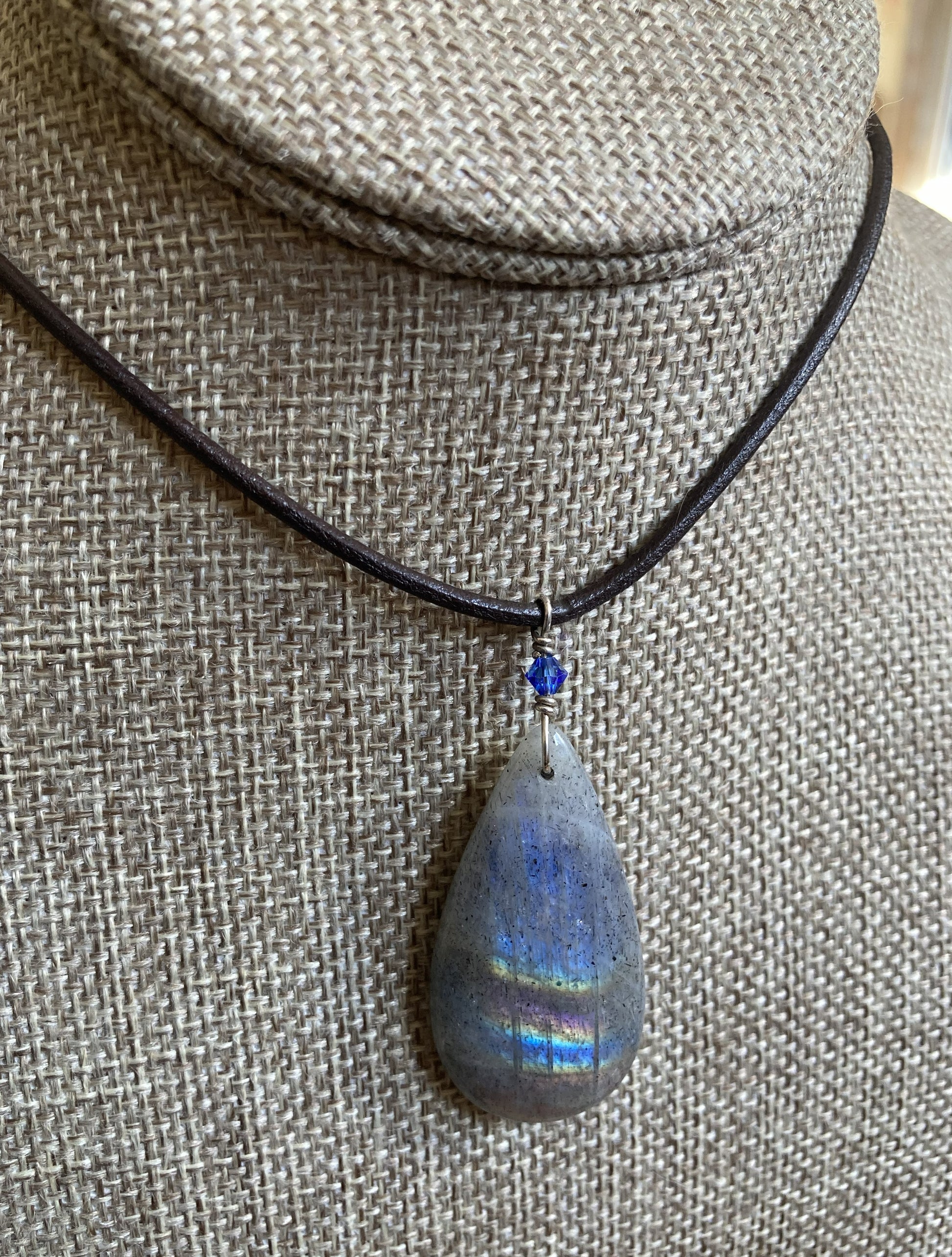 Black leather cord with a Labradorite stone pendant