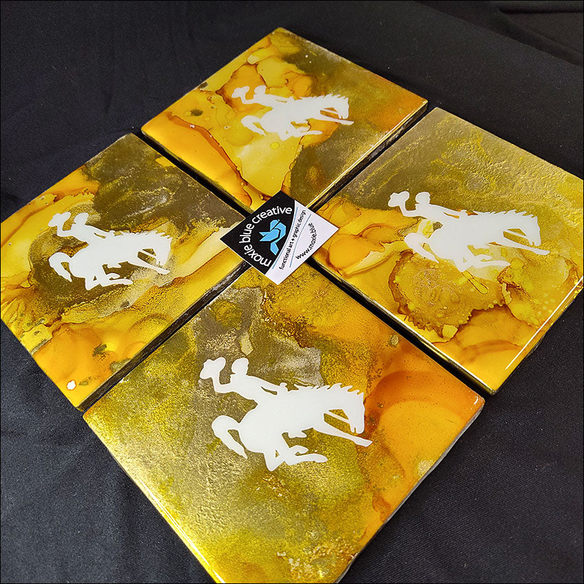 Every coaster is top coated with a clear, high-heat epoxy resin for protection and additional shine
