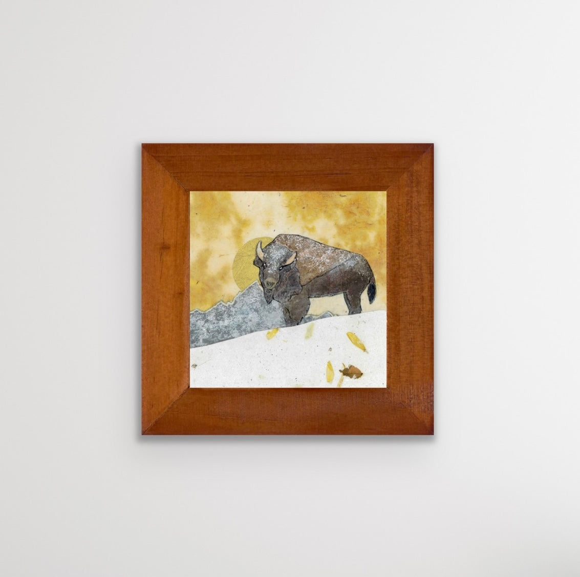 " Teton Golden Sunset Bison" Paper Collage Art