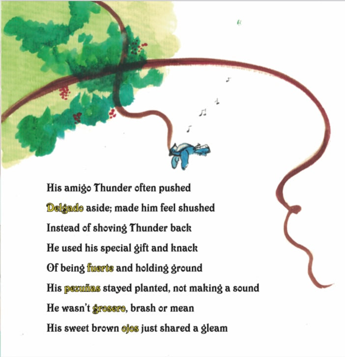 A donkey's bray is a fun and happy sound. It always gets attention and is used to communicate so many things. But can a donkey communicate without braying? Can any of us talk without using sounds? What can you learn from Delgado the Donkey? Learn some Spanish words as you read along and see if you can understand how he communicates without his bray; how to live by the Cowboy Code? Talk Less, Say More!