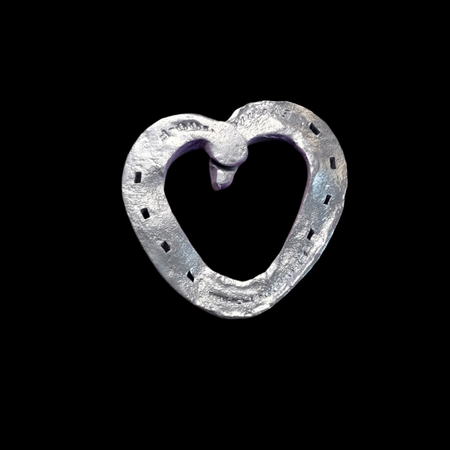 Horseshoe has been hand forged into the shape of a heart