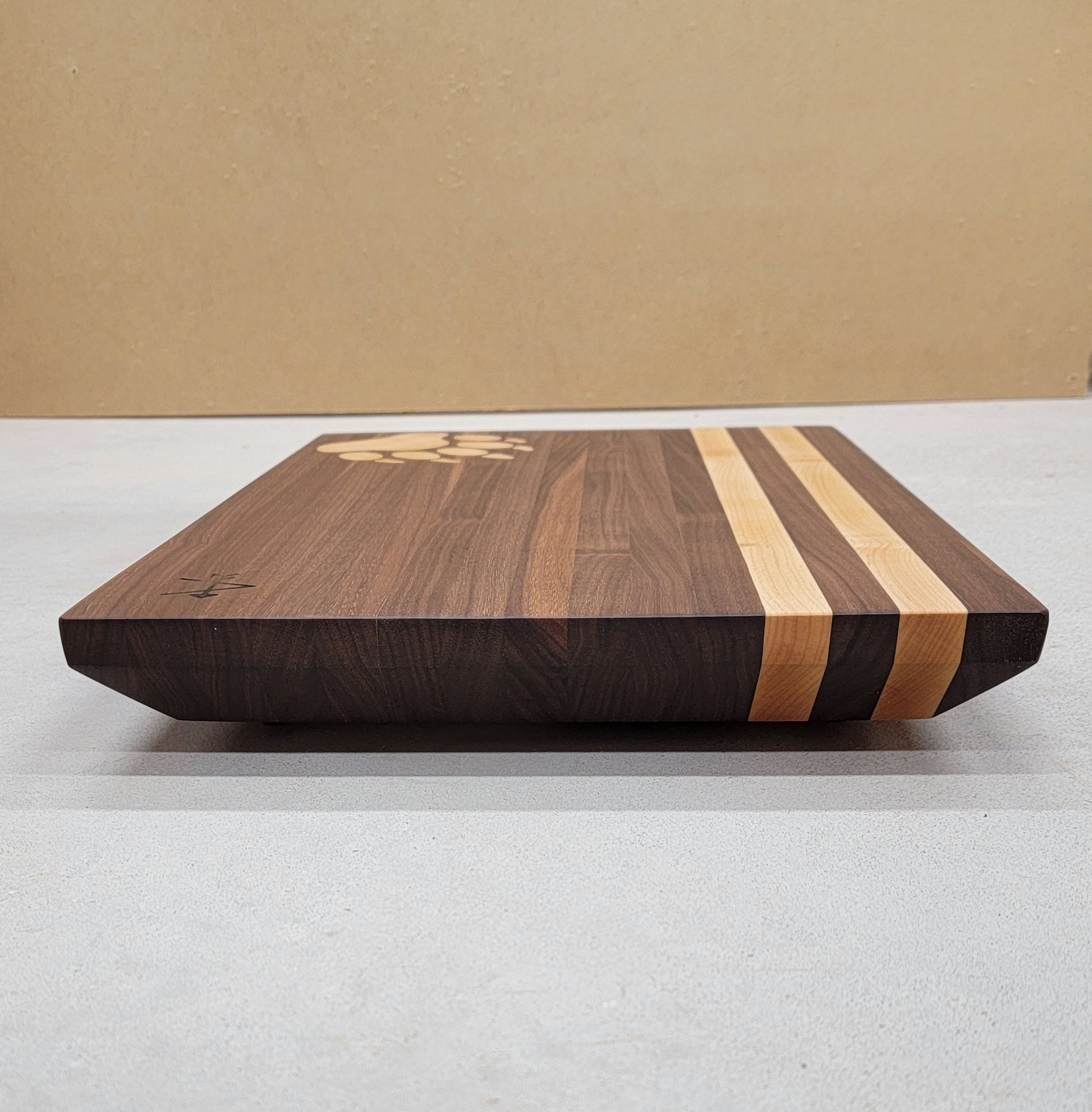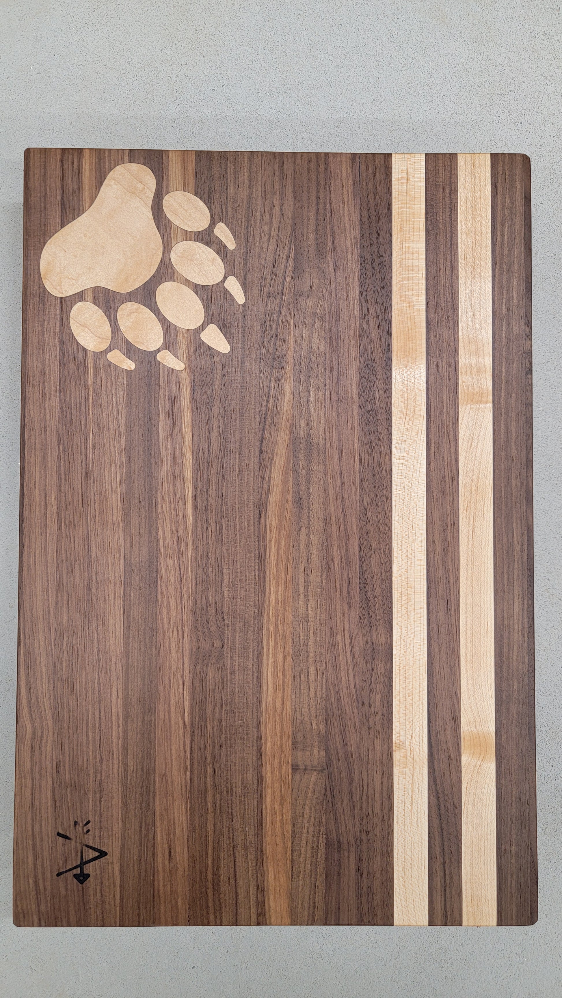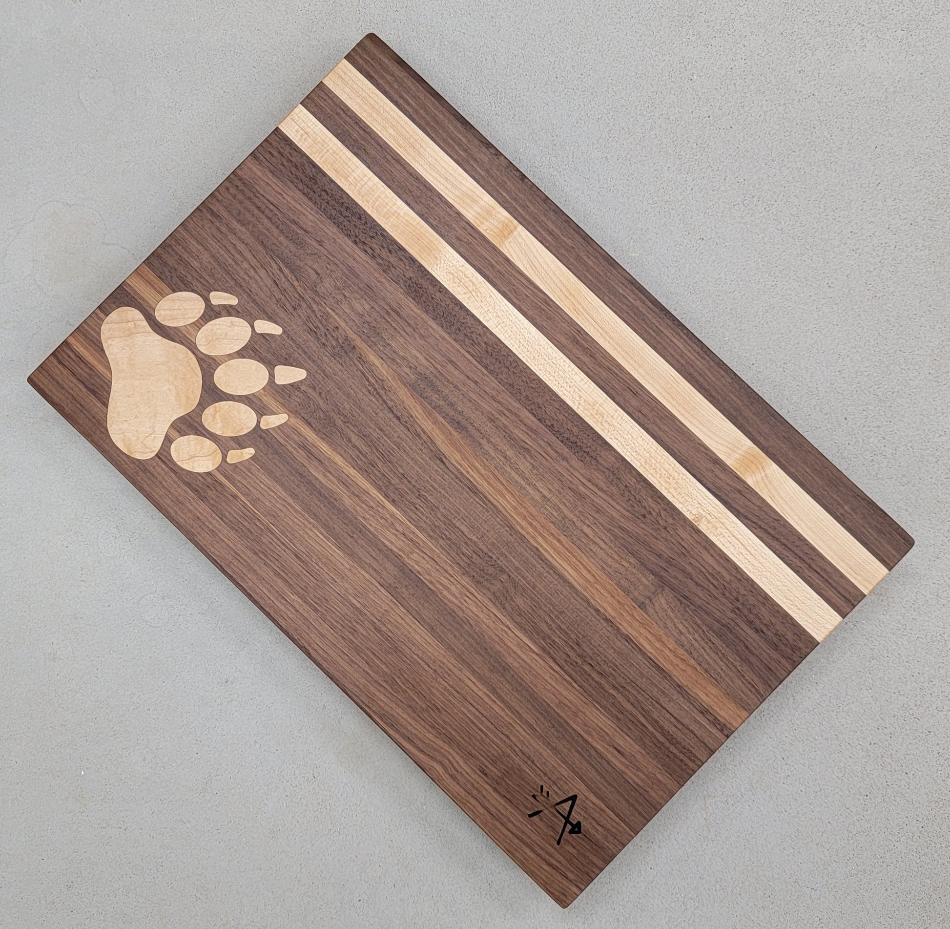 Walnut board with maple bear print and two stripes