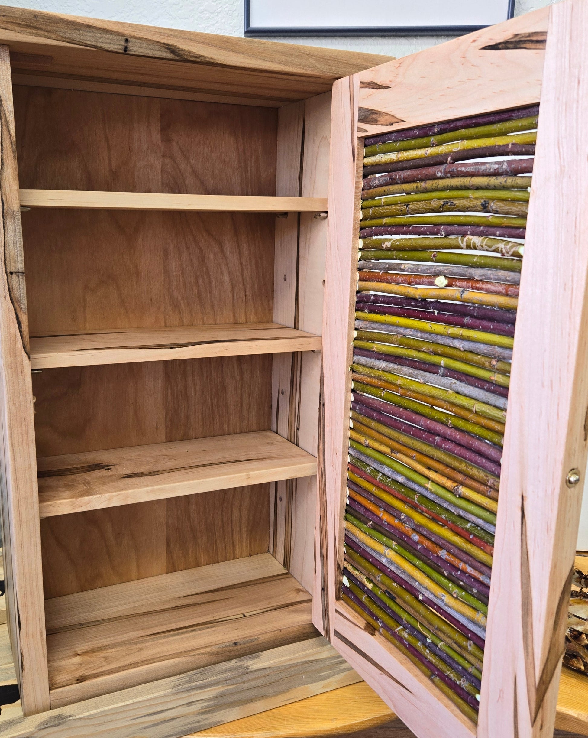 Maple cabinet with raw style willow branch front